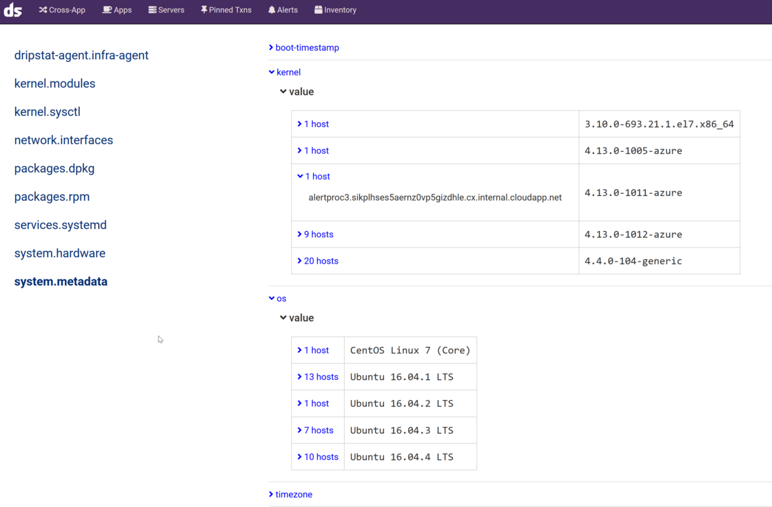 We are launching Inventory Management. Now you can see the configuration of your entire infrastructure from a single pane. Click the ‘Inventory’ tab to view. Make sure to upgrade your DripStat Infra agents first.